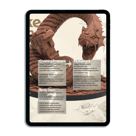 Compatible with 5e or any fantasy roleplaying game, Temple of the Snake God will take you into the depths of the ruined temple where the great snake slithers—venomous and hungry, a relic of the civilisation it was made to protect. Sampling, sensing, its vast pink tongue flickers from between fangs long as the arm of a fully-grown man.
