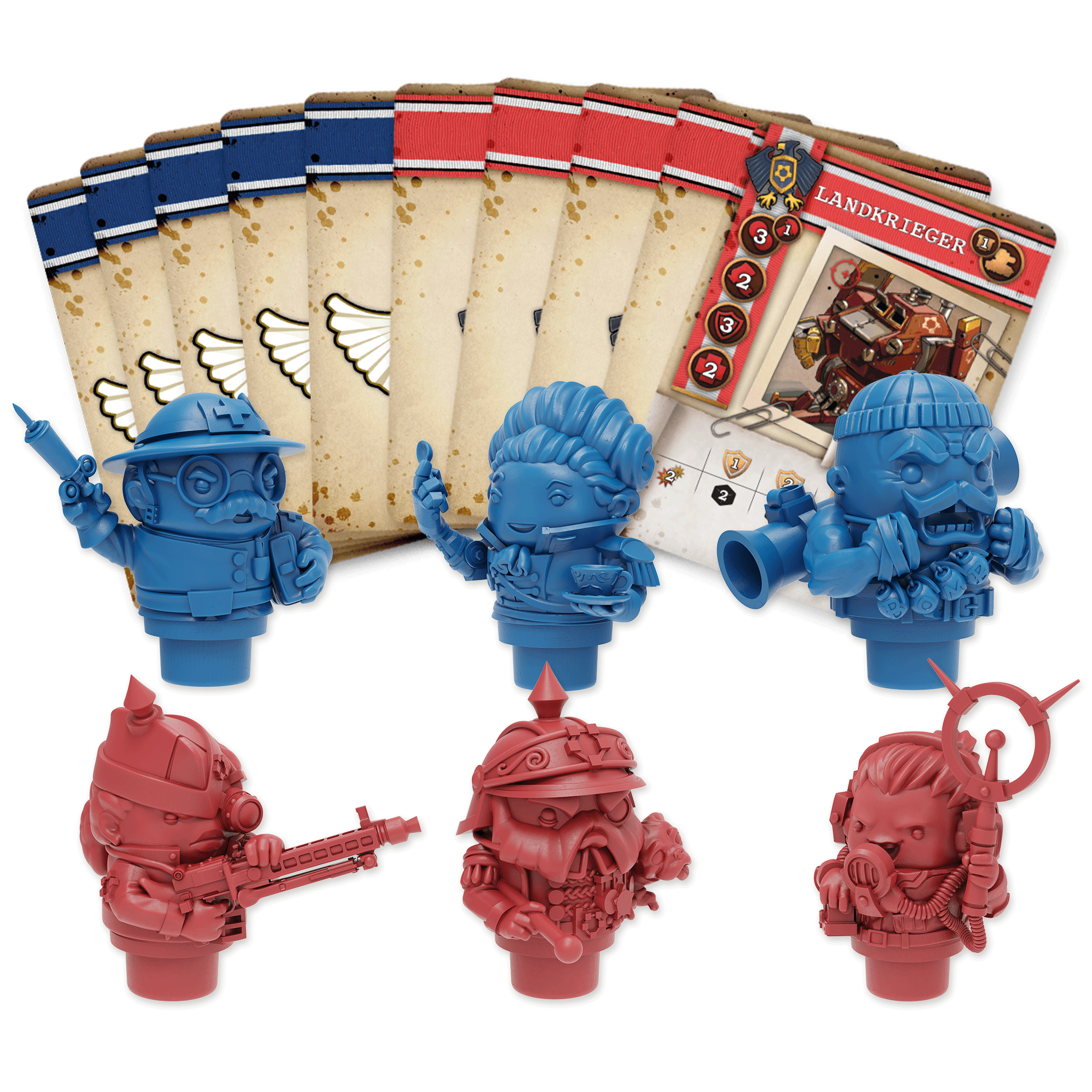 1900’s warfare meets dieselpunk fantasy in an alternative universe of unorthodox inventions! Rivet Wars is a 1-4 player quickfire tactical combat game you can play competitively, co-op, solo, and in teams. Choose your Rivet faction — Allied or Blight — and deploy waves of units to stay one strategic step ahead. Use swappable plugs to customise your minis and create exciting combos, giving you the edge right when it counts!